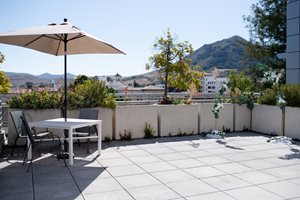 Discover our seasonal rooftop ceremony service! Our rooftop overlooks the beautiful Cerro San Luis Mountain and features surrounding downtown views. Our rooftop can host groups up to 30 guests standing. The allotted time is 30 minutes from the scheduled service, accommodating the ceremony and allowing for photographs with guests. Seating is limited, with approximately 4 seats available, and shade is limited as well.
