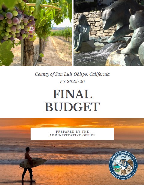 The County's budget is perhaps the most important document published by the County of San Luis Obispo. It serves as the most concrete expression of public policy. Think about your personal finances. How you spend your money reflects your goals. Similarly, how the County spends public funds reflects what the County hopes to accomplish in a given fiscal year. The budget is tied to priorities, plans and specific projects approved by the County Board of Supervisors.