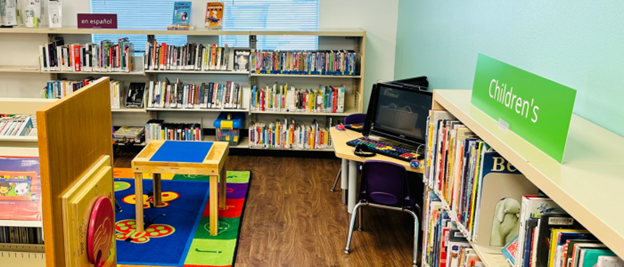 The remodel brings fresh paint, more shelving, additional computer workstations, and family restrooms. The library offers books in English and Spanish for all ages, with a selection that focuses on families and students. “Family literacy is at the heart of this library,” Thatcher said.
