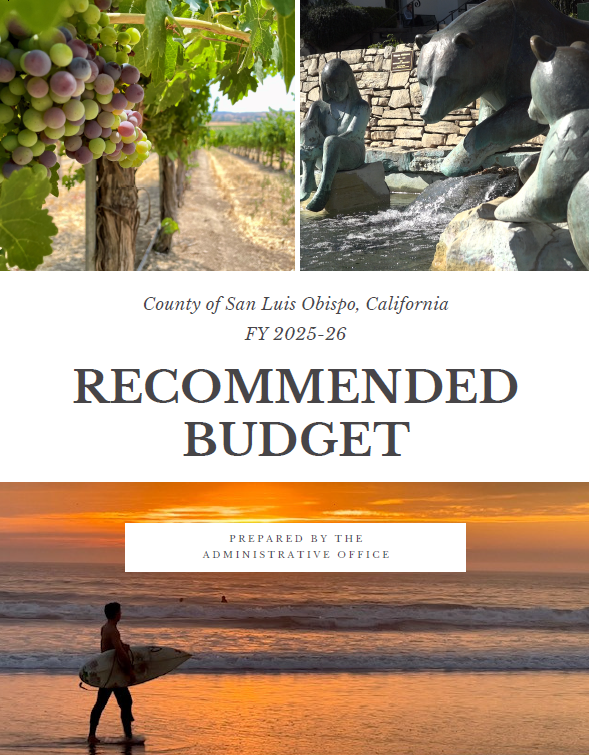 The County's budget is perhaps the most important document published by the County of San Luis Obispo. It serves as the most concrete expression of public policy. Think about your personal finances. How you spend your money reflects your goals. Similarly, how the County spends public funds reflects what the County hopes to accomplish in a given fiscal year. The budget is tied to priorities, plans and specific projects approved by the County Board of Supervisors.