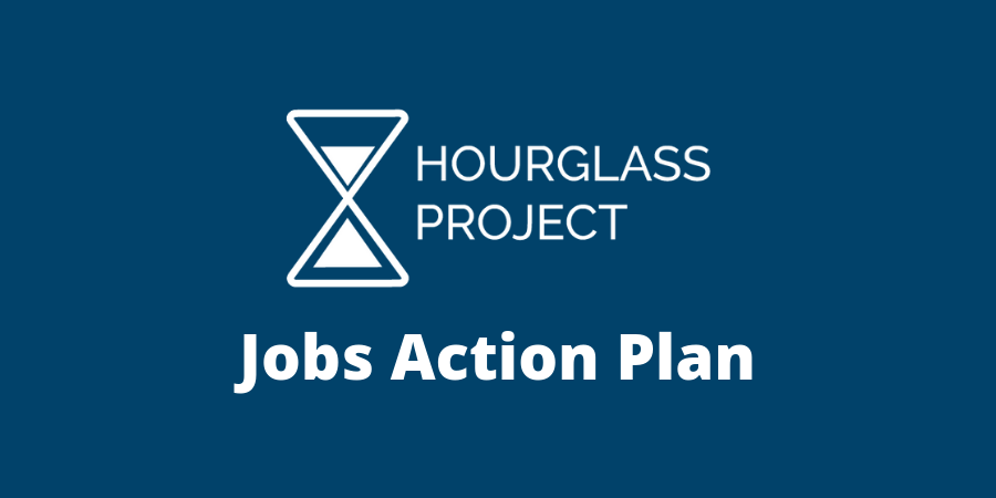 Text on blue background: The Hourglass Project - Jobs Action Plan