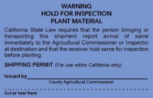 - Look for a "Blue Hold Tag" with the invoice. The hold tag is required for all plant shipments coming from GWSS infested counties.