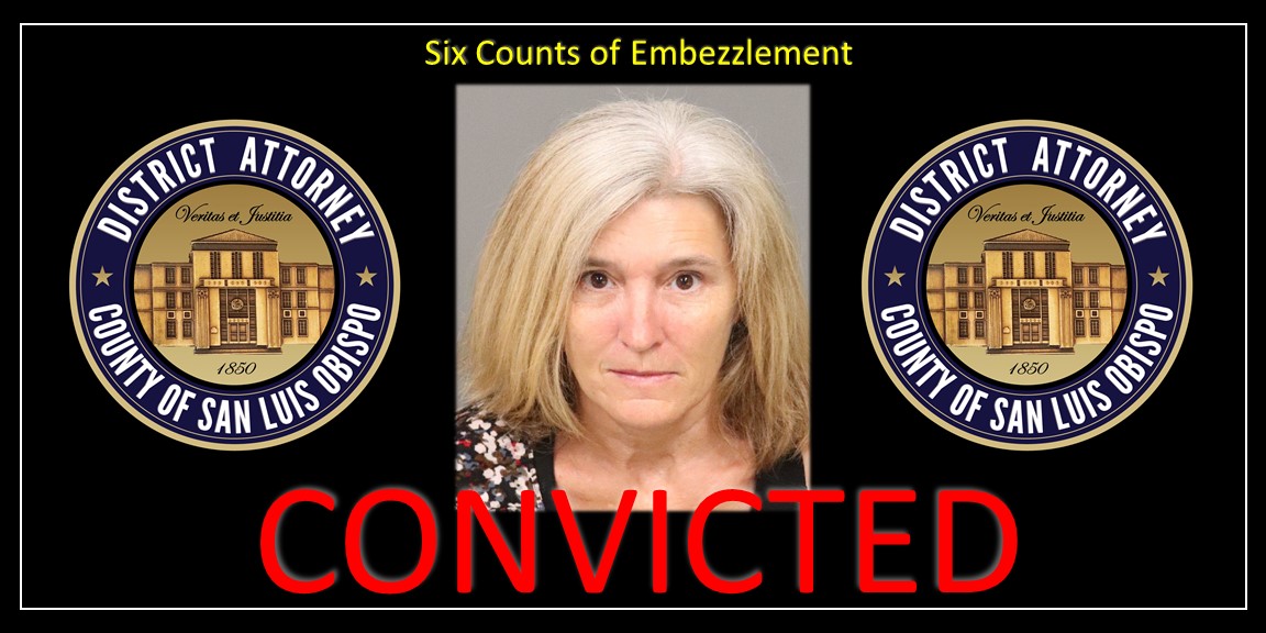 The case was investigated by the San Luis Obispo County District Attorney’s Office Bureau of Investigations with the aid of the Arroyo Grande Police Department and was prosecuted by Deputy District Attorney Michael Frye assigned to the District Attorney’s Special Prosecutions Unit that includes both Major Fraud and Public Integrity.
