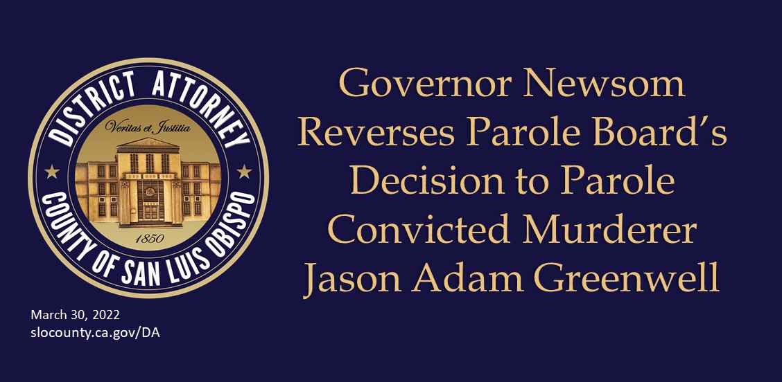 "I am grateful for Governor Newsom’s decision to reverse the Board of Parole Hearings’ decision,” said District Attorney Dan Dow. “We agree with the Governor’s conclusion that Greenwell currently poses an unreasonable danger to society if released from prison at this time.”