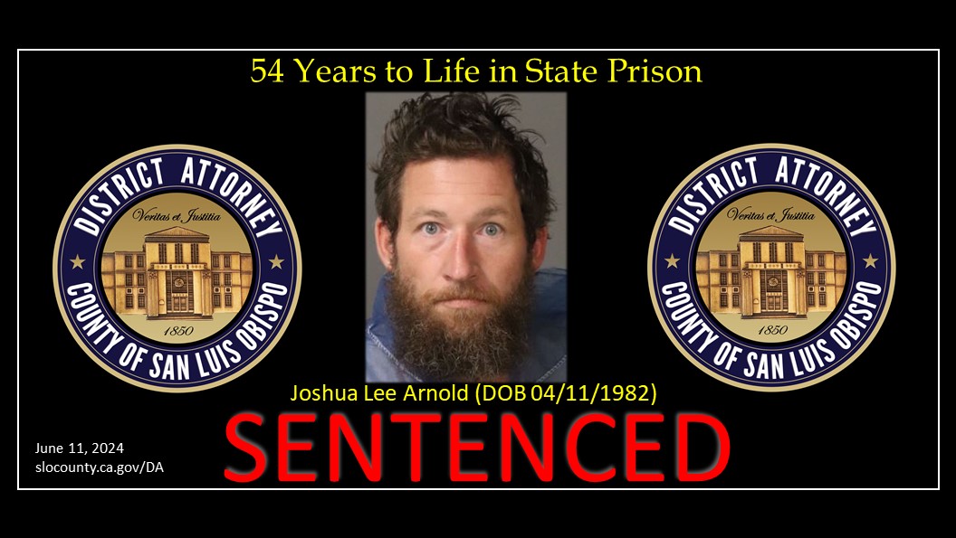In the hours, days, and weeks following Arnold’s shocking crime spree, countless law enforcement professionals from multiple agencies throughout San Luis Obispo County, including the Grover Beach Police Department, the San Luis Obispo County Sheriff’s Office, the San Luis Obispo Police Department, and the San Luis Obispo County District Attorney’s Office Bureau of Investigation, thoroughly investigated each of Arnold’s crimes. These law enforcement professionals’ tireless efforts produced the overwhelming evidence necessary to hold Arnold accountable.