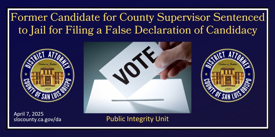 Former Candidate for County Supervisor Sentenced to Jail for Filing a False Declaration of Candidacy