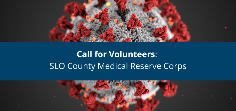 The County of San Luis Obispo is seeking qualified volunteers for the County’s Medical Reserve Corps to expand, as needed, local medical and mental health care while our community works to overcome the coronavirus disease 2019 (COVID-19) pandemic.