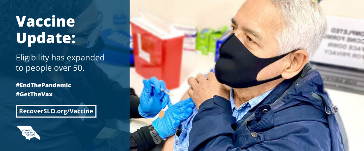 San Luis Obispo, CA —San Luis Obispo County community members age 50 and older are now eligible to receive a COVID-19 vaccine in SLO County.