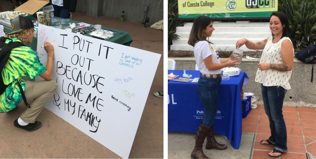 While the issue is serious, the event approach was light-hearted: students and community members who signed a pledge to quit smoking were rewarded with a cold turkey sandwich and information about County resources to support them in quitting. Those who don't smoke earned their own turkey sandwich by helping pick up cigarette litter.