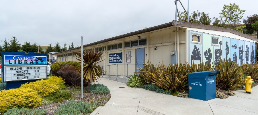 The Cayucos Library is located at 310 B Street, a half mile from the Cayucos Pier and adjacent to Cayucos Elementary School. It is one of 14 branches of the County of San Luis Obispo Public Libraries.