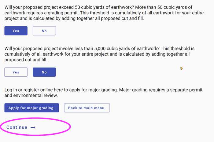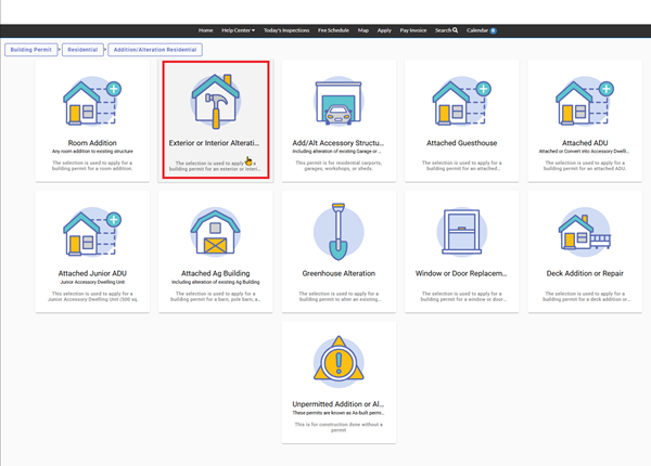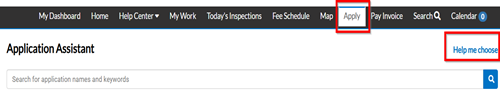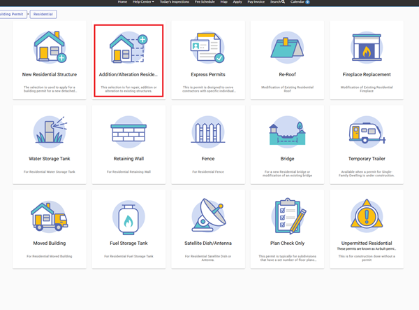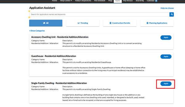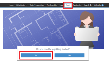 - A list of questions that will populate the correct Apply button for the Permit/Plan, or