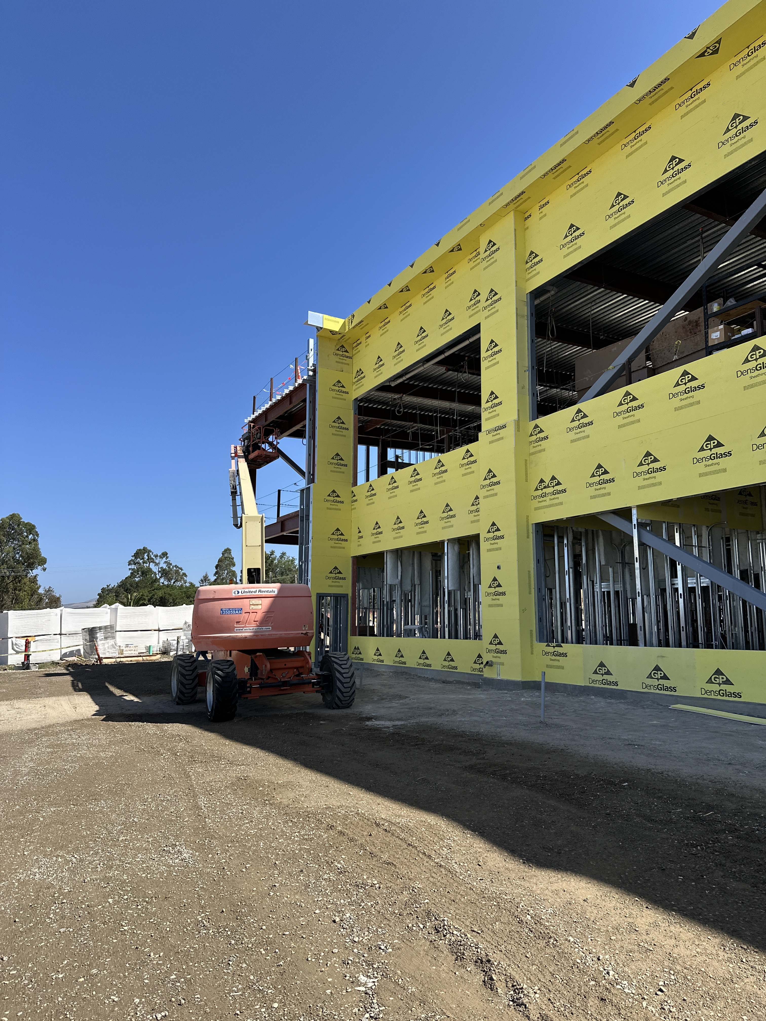 Southwest building exterior with substrate sheathing (Densglass) in place.