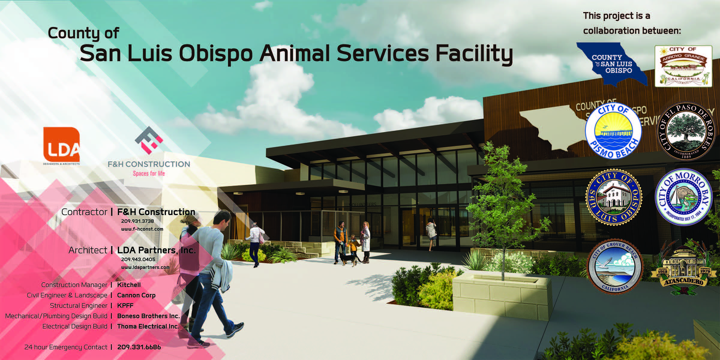 This project will develop the County’s new Animal Services Facility. When complete, the new 16,000 square foot facility, associated infrastructure, parking, and landscaping will replace the 43-year-old facility currently operated by Animal Services. It will provide an appropriate environment for the care of animals and for families to find their new pet(s). The new facility is being developed under a partnership between the County of San Luis Obispo and all seven incorporated Cities within the County.