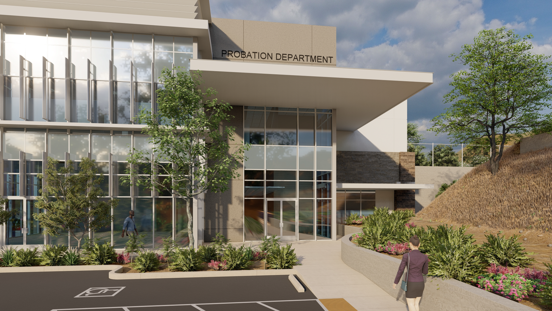 Below are conceptual, not final, architect renderings of the new probation facility.